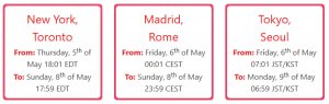 L’edizione della LocJam 2022 è infatti prevista tra il 5 e 6 maggio 2022, interamente online. Potrai sincronizzarti su tre differenti assi: NYC/Toronto, Mardid/Roma o Tokyo/Seoul.